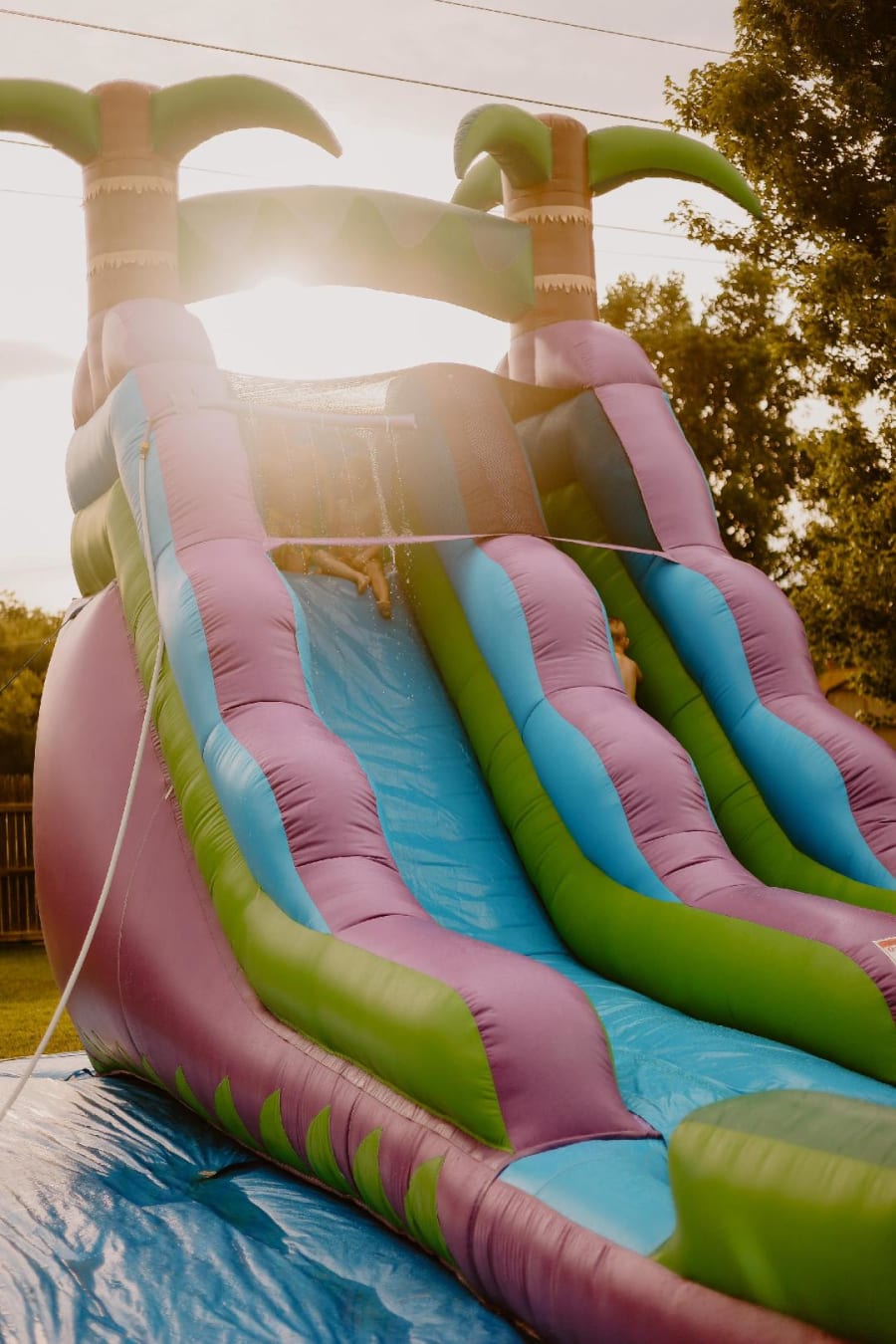 Our Tropical Breeze water slide is designed to bring a taste of the tropics right to your backyard in Rogers and surrounding areas. 🌊 With its vibrant colors and tropical theme, it will be the highlight of any party or event.