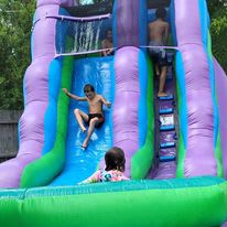 This water slide is easy to set up and take down, making it a convenient option for any occasion. Whether you're hosting a birthday party, family reunion, or just want to beat the summer heat, the Tropical Breeze water slide is the perfect choice.